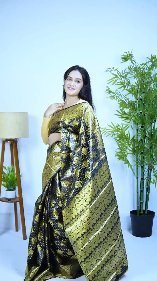 শাড়িটির নকশায় ব্যবহার করা হয়েছে ট্র্যাডিশনাল ও মডার্ন স্টাইলের মিশ্রণ, যা আপনার ব্যক্তিত্বে নিয়ে আসবে নতুন এক আভিজাত্যের ছোঁয়া।